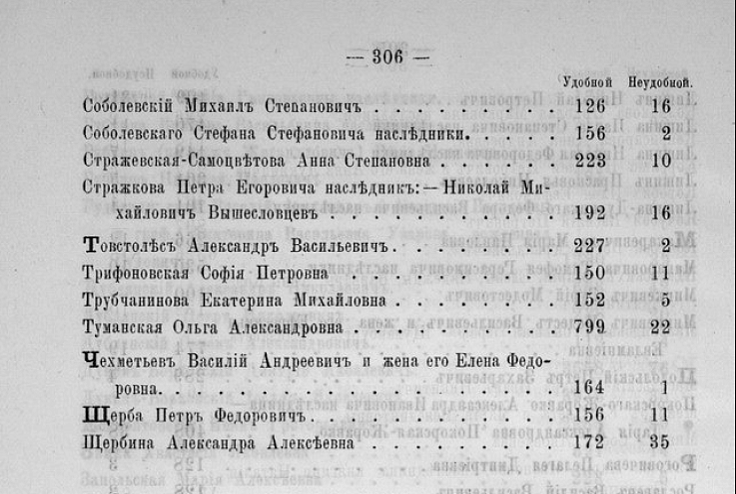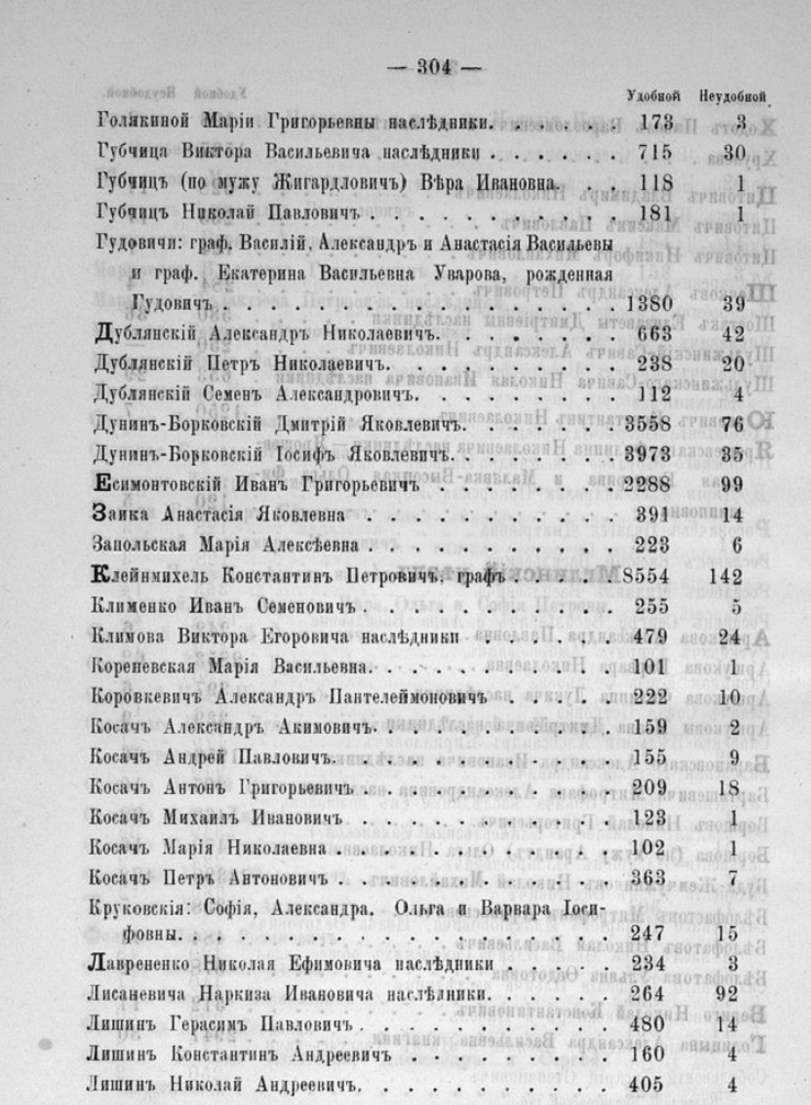 Первый справа столбец – количество десятин (прим. 1.1 га) удобной земли,