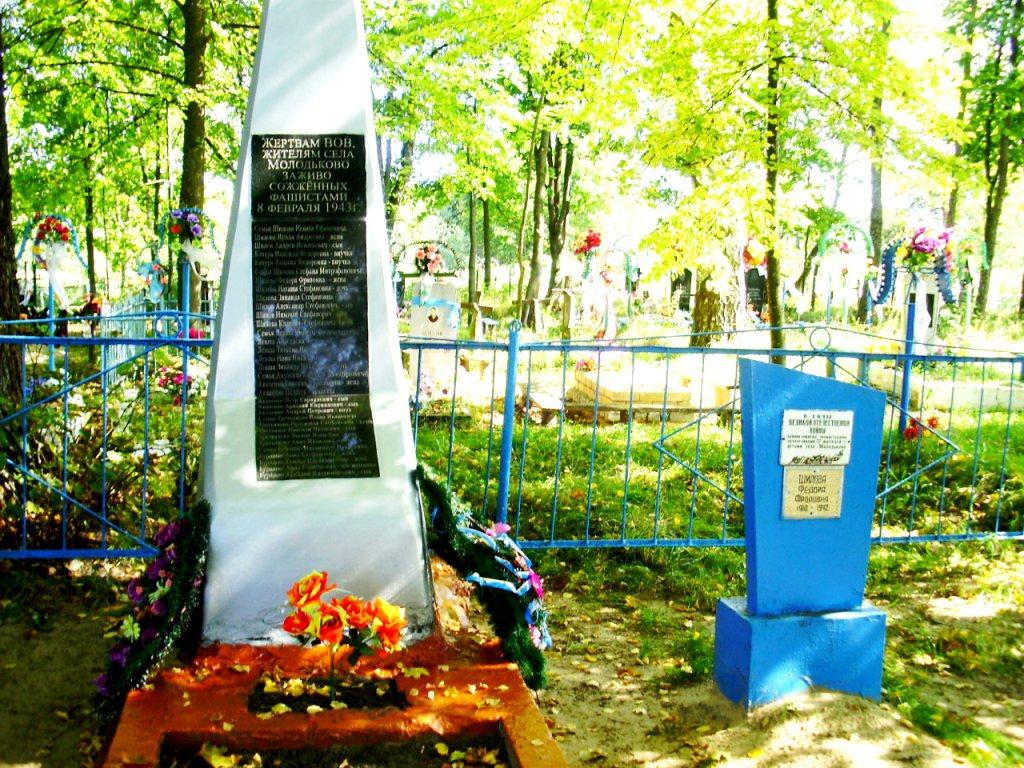 Обелиск-памятник жителям села Молодькова, заживо сожжёным фашистами...